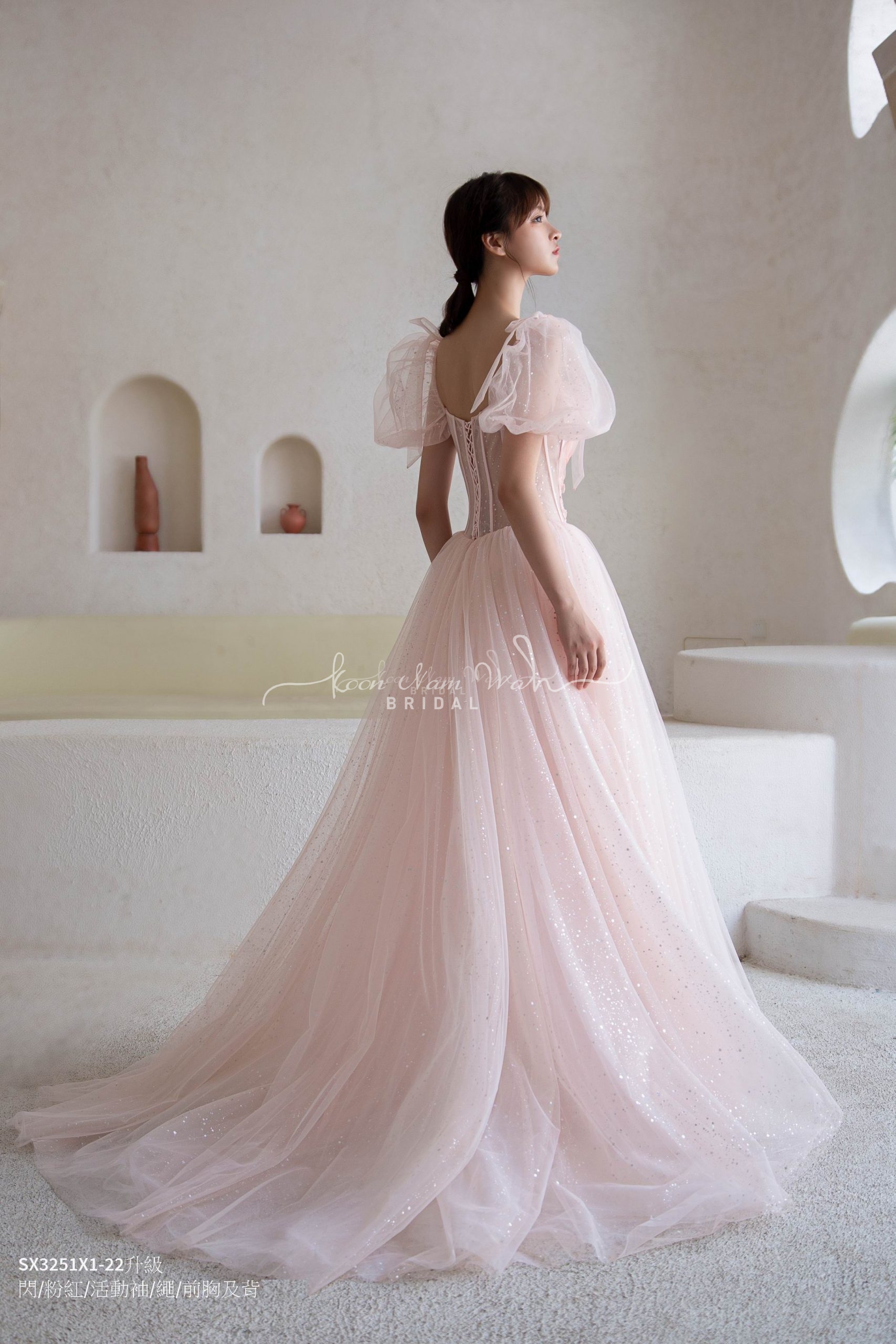 閃/粉紅/活動袖/繩/前胸及背加紗